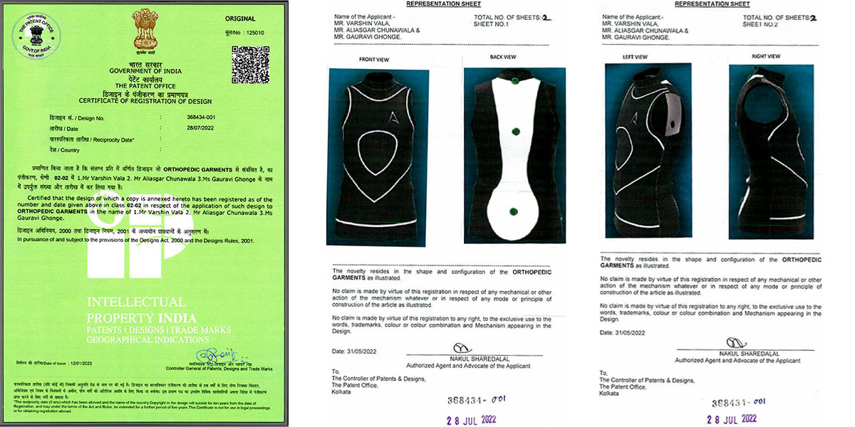 Our patented Osteoarthritis Jacket, the team’s first design patent, relieves back pain across three key areas. Designed for everyday use, it addresses age-related and adult discomfort—offering a simple, practical solution that integrates seamlessly into daily life.