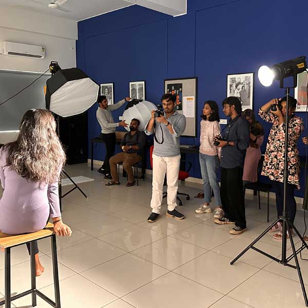 A full-fledged air-conditioned Photography Lab with the latest mirrorless cameras, a wide range of lenses, studio lights, gimbals, 360 degree cameras, tripods and backdrops allow students to explore Photography as a medium of communication and also to document their work.