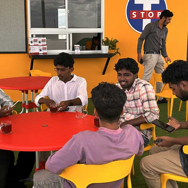 Our rooftop canteen T-Stop is the place to go for a quick recharge. With fresh air and a 360 degree view of the surrounding hills, this is the place to relax, have some refreshments and connect with friends and faculty over a cup of tea or coffee. Snacks, soft drinks and light meals are also provided. Green potted plants and a fish pond adds to its ambience.
